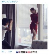 松井が公開した写真は、窓際でポーズを決めたカット。赤いドレスを着たプロポーションは″スレンダー″そのもので、細くきれいな生足がのぞけるセクシーな一枚だ。