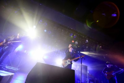 2番手に登場したのは、長崎出身4人組ロックバンドのLAMP IN TERREN。彼らがスタートを飾ったナンバーは「innocence」。闇夜を照らし出す光のような疾走感溢れるメロディーと、松本大(Vo./Gt.)による繊細だが力強いボイスが混ざり合い、一発目から観客の熱も帯びていくのがよくわかった。