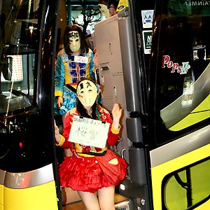 はとバスから降りる仮面女子の桜雪(撮影=桂 伸也)