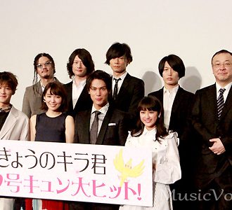 ロックバンドの[Alexandros]が25日、都内でおこなわれた、映画『きょうのキラ君』の初日舞台挨拶に出席、担当した同映画の主題歌「今まで君が泣いた分取り戻そう」の誕生秘話を明かした。また、ヒロインを務める飯豊まりえは過去に彼らのMVに出演。当時、ボーカルの川上に「映画の初主演が決まったら主題歌を書きたい」と言われた飯豊は4年越しでそれが叶ったことに「本当に驚きました」と喜びの表情を浮かべた。