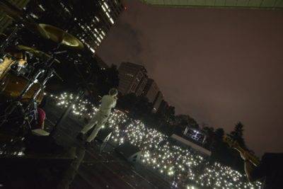 続いて、横揺れのビートが頭をシェイクさせた「水商売」を披露。<金 金 金 金♪>と強欲なフレーズをシンガロング。スレ(ライブ)ではありのままを晒せと言わんばかりの、パフォーマンスで魅せる。演奏が終了し、mioがライトを手に持ち客席を照らすと、その光に呼応するかのように、オーディエンスは手持ちのスマートフォンのライトを使用し、ステージに向ける。会場に灯った白い光が趣ある景色を見せた。