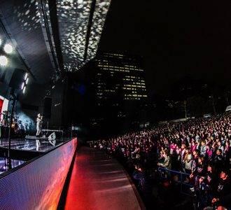 この日は4月にしては寒い空気。気温は一ケタ台で午前中は雨も降っていた。午後になり雨は止み曇り空が広がるなか、会場となった日比谷野外大音楽堂には、多くのオーディエンスで埋め尽くされていた。