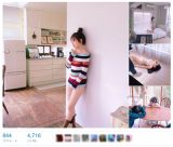さらに、ボーダーの服を着て壁に寄り添ったショットやTシャツを着て伸びをしたショットは、綺麗な生足が活写されており、向井地のイキイキとした様子をストレートに感じさせている。