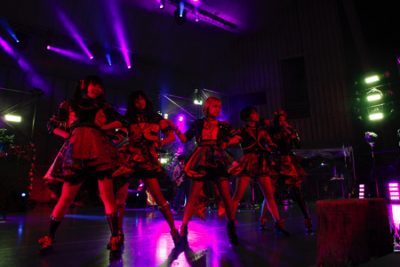 続いては、「Pretty Little Baby」「Baby Kiss」とポップチューンで、会場のテンションはアゲアゲ。「Baby Kiss」では傳谷英里香の「はい、お弁当。あっ勘違いしちゃった? 調子に乗んないでよ!」とツンデレ萌えゼリフに会場が沸いた。MCではオープニングで、後ろから入場した時に、誰にも気付かれなかった為、肩を叩いて存在をアピールし、ドッキリが大成功だったとメンバーご満悦の様子を見せた。