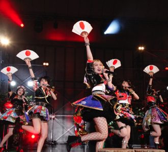 林の「今まで全力で走り続けられたのは、みなさんのおかげです。これからもてっぺん目指して走り続けたい」と意気込みを語り、5月24日にリリースされる新曲「バキバキ」を初披露。彼女たちが掲げる“IDOROCK全開"のナンバー。ヘビーかつスピーディーなグルーヴで、エネルギーを放出していく。大きく腕を振り回す振り付けと、真っ赤な照明がインパクトを与えた。