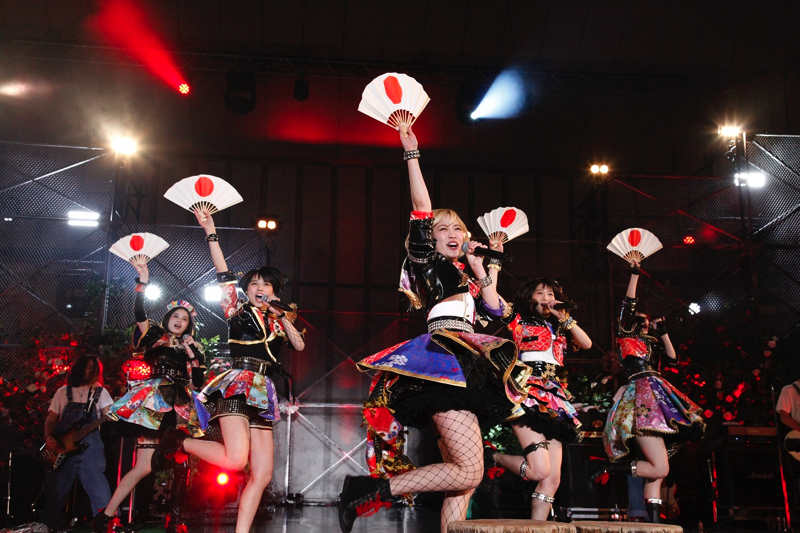 バンドメンバーによるアグレッシブなインストナンバーから、和柄の新衣装にチェンジし、「ニッポンChu!Chu!Chu!」を披露。艶やかでスタオリッシュな衣装と、日の丸が入った扇子で華麗にパフォーマンス。「早着替えは戦場だった。メンバーの姿が見えないぐらい(笑)」とインストの最中、舞台裏の様子を明かしてくれた。