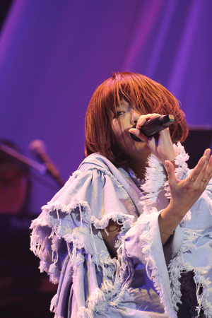 実は、登場早々に衣装のボタンが外れてしまっていたようだが、「ボタンが外れるくらい気合い入っているんで!」と、アクシデントをものともしない意気込みを見せた彼女。「ツアーの初日の福岡でもやっていなかった曲が、すでに登場していて。「Black Butterfly」や「EGOIST」は、久しぶりに歌ったんだけど、どうだった?」と、問いかける。客席から「最高!」と声が上がると、Pileは嬉しそうにうなずいた。