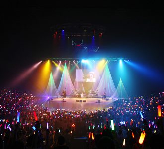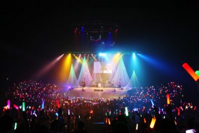 後半には、「空色デイズ」、「いつかキミに届ける世界」と、シングルのカップリング曲を披露。「いつかキミに届ける世界」では、曲中にメッセージ入りのテープが発射され、それを手に持った観客が、曲に合わせて一斉にジャンプする様子は壮観だった。