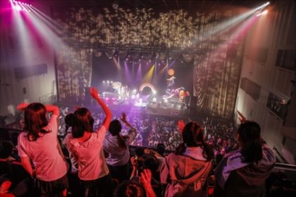 コール&レスポンスで会場が一体感になった後は、ピンクと白の照明をバックに女心がたっぷりと歌詞に含まれている「君との距離」と「おんなのこ」を連続で披露。恥ずかしくて言えない女の子の気持ちを、音に乗せ歌いあげていく。