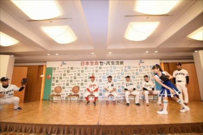 30日に控えた交流戦開幕に先立ち、開催された本会には、特別ゲストとして、パ・リーグ代表に、鈴木大地選手(千葉ロッテ)、浅村栄斗選手(埼玉西武)、伊藤光選手(オリックス)、セ・リーグ代表として田中広輔選手(広島東洋)、田口麗斗選手(読売)、原口選手の6選手が出席。それぞれ交流戦で対戦したい選手、交流戦に向けての意気込み・抱負などを述べた。