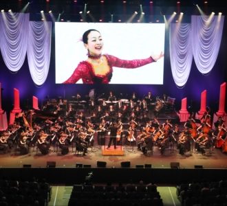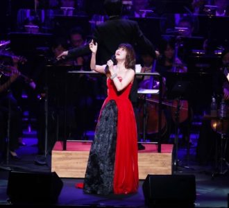 そして新妻が赤いオフショルダーのドレス姿で登場し、「GOLD」を歌唱。オーケストラの演奏を凌駕してしまいそうな、圧倒的な歌唱力を披露した。新妻は曲について「ミュージカルの曲なのですが、オリンピックでも歌唱されたことのあるオリンピックとはゆかりのある曲です。もちろん“GOLD”と言えば、金メダルのことを連想しますが、誰もが命を燃やして一生懸命生きれば、それぞれの“GOLD”がある、ということを歌っている曲なので是非歌いたいと思いました」と、楽曲に込めた想いを語った。