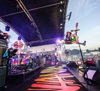 3ピースロックバンドのWANIMAが6月3日に、東京・お台場の潮風公園 太陽の広場特設ステージで、フリーライブ『uP!!!NEXT WANIMA ~Gotta Go!! Release Party~』を開催した。5月17日リリースの3枚目シングル「Gotta Go!!」を記念しておこなわれたもの。抽選で選ばれた約5千人のファンを前に「CHARM」や「ララバイ」など、アンコールを含めて全18曲を熱演。ユーモア溢れるトークと、心躍らせるサウンドで魅了した。