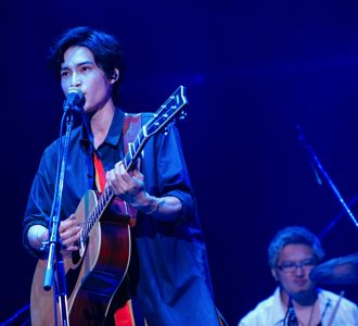 2組目はコロンブスステージに高橋優。「福笑い」でライブはスタート。聴くものを笑顔にさせてしまう不思議な魔法のような楽曲で、会場をほっこりとした空気に。続いては代表曲「明日はきっといい日になる」を披露。Gibsonのアコギを軽快に鳴らし、なんともポジティブな気分にさせてくれるナンバーで、観客もリズムに合わせ腕を振り上げ、会場には熱気に包まれた。