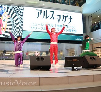この日、池袋サンシャインシティ噴水広場には1000人のアルスメイト(ファンの名称)が集結。カラフルなケミカルライトを手に、アルスマグナの登場を今か今かと楽しみにしているようだった。開演時刻になると神生アキラから「敵は何処だ!? 噴水広場のみんな大丈夫か!? 地球のメイトの平和は俺たちが守る!!」という声が鳴り響き、アルスマグナが登場。アルスメイトからの大歓声とともに、1曲目には「全開で行こう」のカップリング曲「イレギュらレンジャー」を披露。シンクロ率120%のキレキレのダンスと、ノリの良いパフォーマンスを魅せつけアルスメイトを魅了した。