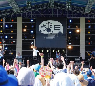 フィナーレは、この日の出演アーティストが全員登場して「うたのうた」。とっぷりと暮れた夜空に、出演者ひとりひとりの歌声が、そして最後には全員の大合唱が響き渡る。最後に比嘉栄昇が「うたの日の形はどんどん代わっていますが、今のこの(観客参加型の)スタイルが最高だと思います。皆さん、来年もぜひ参加してください」と語りかけ、ステージ上に800人、客席に7千人、合わせて総勢7千8百人の“出演者”によるコンサートは、華やかに幕を下ろした。