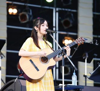 沖縄のアーティスト3組が終わったところで、カントリーシンガーの坂本愛江(よしえ)がステージに立つ。著名なカントリー歌手を父に持ち、幼い頃からカントリーを聞いて育った彼女は、伸びやかで力強い歌声で「What a wonderful world」など3曲を歌い上げ、会場をアメリカンな空気で満たした。