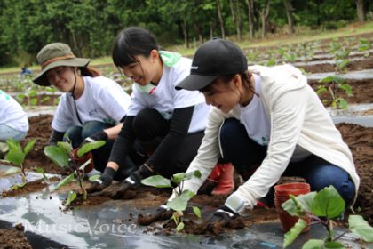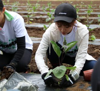 ボランティアがおこなわれた農地は、福島駅から車で約20分の山中にあった。車で移動する途中にも畑や田んぼ、果樹園などの田園風景が広がり、美しい山々に囲まれた長閑な景色からは震災の面影は見て取れなかった。この日植え替えられた、ナスの苗も山中の澄んだ空気と肥沃な土地の中で元気に育っていくのだろう。