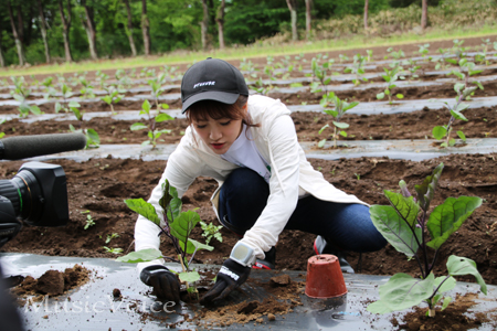 高橋は今回、一般参加者約50人とともに、震災後の風評被害の影響で打撃を受けた福島市の農地で、ナスの苗の植え替えや農地の草むしりなど農作業の手伝いをおこなった。風評被害について高橋は「様々な情報が飛び交っていますが自分の目で見て、手で触って、考えることが大事なのではないでしょうか。私も今日体験したことを東京の人たちに話したいと思っています」と自身の考えを述べた。