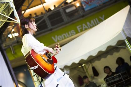 「今日も本当に雨を心配してたんです。でも音楽の時は晴れ女パワーが出るんですが、(いま撮影中の)ドラマの時は雨も多かったりするんですよ~」というエピソードを交えながら「最後に聴いてください」とCDデビュー曲の「明日も」を熱唱で締め括り。
