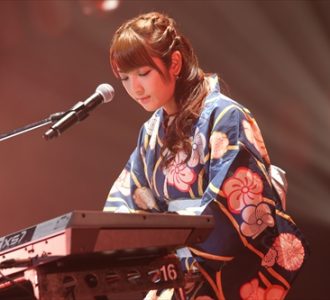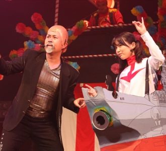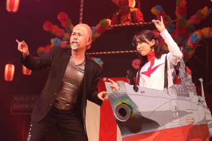 続いては、本邦初公開となった派生ユニットCHANPAGUNE KINGのデビューシングル「ASKA金」「A-ZABU」を披露。楽曲の作詞を担当した漢a.k.a. GAMI、作曲担当のDJ BAKUも登場して、本格的なステージを披露する明日花らのプレーを、さらに盛り上げる。続いて由愛による「ヘビメタ祭り」、神咲のソロピアノによる「ピアノ祭り」とまさに「祭り」尽くし。そして第一部最後には彼女らのステージでは定番となった、葵による「宇宙戦艦ヤマト」祭りでは、葵自身が初の一人での歌を披露、お笑い芸人の神奈月も登場して楽しいステージを繰り広げ、大きな笑いが飛び交った。