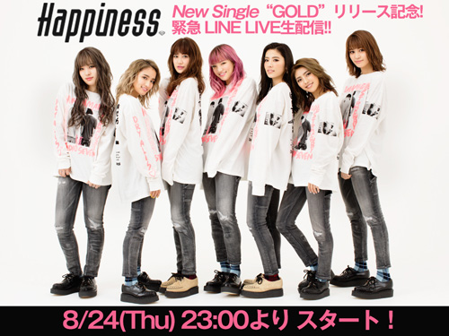 9月20日に、ニューシングル「GOLD」をリリースするHappiness。それを記念して緊急LINE LIVE生配信が同日時におこなわれる。登場するのはSAYAKA、楓、藤井夏恋、MIYUU、YURINO、須田アンナ、川本璃。