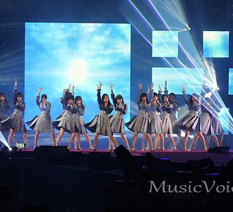 青い生地をベースに白い刺繍が施された衣装で登場し、2015年の11thシングル「命は美しい」を披露。ピアノの前奏から始まる同曲とともに、大きな歓声が会場中に響く。続いて観客の持つ色とりどりのペンライトが会場を彩る中、生駒里奈(21)がセンターを務める2012年の4thシングル「制服のマネキン」を歌唱。ユーロビート調の電子サウンドが印象的なイントロが流れると、会場中に大歓声が響き渡った。ポップなメロディとキレのあるダンスで会場のボルテージを上げる。
