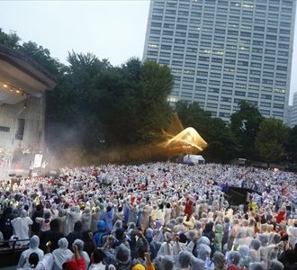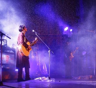 5人組ダンスロックバンドのDISH//が17日に、東京・日比谷野外大音楽堂でワンマンライブ『DISH// 日比谷野外大音楽堂公演17’秋『MUSIC BOIN!!』』をおこなった。初披露曲「コトダマ」などを含む全24曲を披露。この日は台風18号の影響に見舞われ大雨と、最悪のコンディションであったにもかかわらず、白熱のライブ演奏とダンスパフォーマンスで熱い夜を演出した。