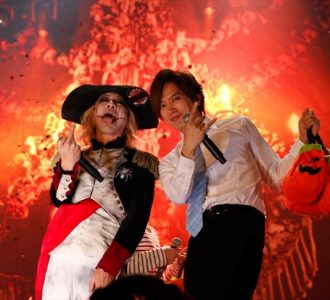最後は、スティッチに扮したShinya (DIR EN GREY / SERAPH)、チキンアーミーの逹瑯 (MUCC)やギズモ姿の柩 (GREMLINS / NIGHTMARE) 、ゴーストシープに仮装した分島花音らによるHALLOWEEN JUNKY ORCHESTRAの演奏をバックに、出演者全員が客席を練り歩きながらお菓子を巻き配る。「Y.B.I.(ヤバイ)」というHYDEのDAI語も飛び出すほどの熱狂を繰り広げた初日に、残り二日への期待がさらに高まっていく。【文=早川加奈子】