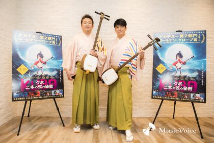 兄弟三味線奏者の吉田兄弟が、映画『KUBO/クボ 二本の弦の秘密』(11月18日全国公開)で、エンディングソングとなる「While My Guitar Gently Weeps」を演奏している。【取材=桂 伸也/撮影=冨田味我】
