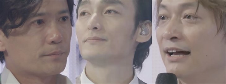 元SMAPの稲垣吾郎、草なぎ剛、香取慎吾が出演した、インターネットテレビ局・AbemaTVの『72時間ホンネテレビ』が5日にグランドフィナーレを飾った。元SMAPメンバーでオートレーサーの森且行との21年ぶりの共演。5日のグランドフィナーレでは自らが選んだ72曲を生歌唱。“72時間”という前代未聞の長丁場を強い気持ちとともに走り切った3人の目には涙が溢れていた。以下は番組を終えた3人のコメント。=写真・(C)AbemaTV=