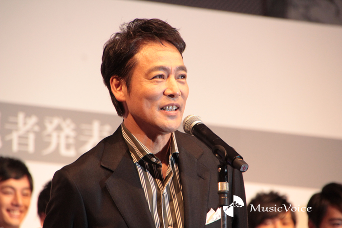 - 結成された「男劇団 青山表参道X」と、特別ゲストとして出席した村上弘明、前田美波里、剛力彩芽、岡田結実
