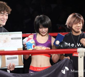 森も川村の普段の努力する姿に感心していたことを明かしながら「虹花ちゃんは年下だけど、“やっぱり努力は裏切らない”ということをすごく教えてもらえたり、尊敬できるところがたくさんある」と尊敬の念をコメント、さらに「すごくスタイルもいいし、今日の試合もとてもカッコよくて、キックも『ストリートファイター』に出てくるみたい。女性なのに男性のような強さ、カッコよさを見せられたと思いました」と川村に大いに魅了された様子を見せていた。【取材・撮影=桂 伸也】