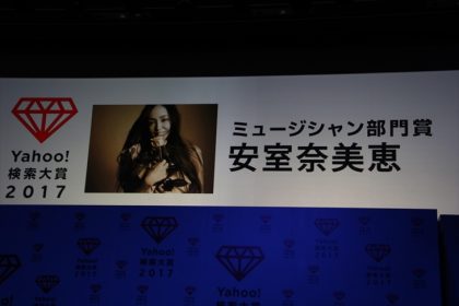 安室奈美恵が6日、都内でおこなわれた『Yahoo!検索大賞2017』の「ミュージシャン部門賞」を受賞。大賞には「お笑い部門賞」のダブル受賞でブルゾンちえみが輝いた。安室の受賞に対し、授賞式の特別ゲストMCを務めた、お笑いタレントの土田晃之は彼女と同じ92年のデビューしたことを最近知ったと言い、「本当に第一線で活躍されてね。おめでとうございます」と賛辞を送った。