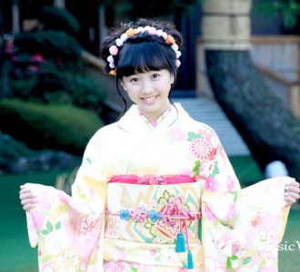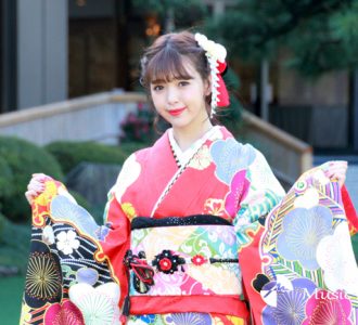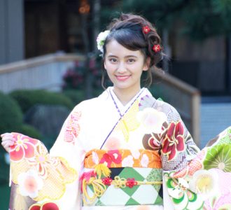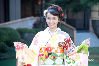 この撮影会はオスカープロモーションの恒例行事。毎年ドラマや映画、バラエティで活躍するタレントやフレッシュな新人が参加する事で有名だ。また今回の晴れ着を担当したのはジョイフル恵利、NISHIZEN、KIMONO no YASHIMAの3ブランド。参加した10人がそれぞれ色とりどりの美しい振袖姿を披露し、報道陣を魅了した。