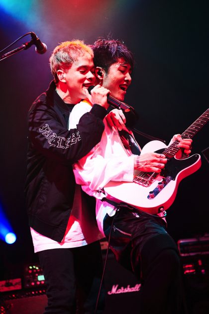 続いてSKI-HIとのコラボで見せたのは「GemStone」。猛々しいラップと、人生初だという連続シャウトを見せると、MIYAVIもギアを上げさらにエキサイティングな空間に。ゲストたちとMIYAVIによる化学反応を感じさせるなか、「Fight Club」へ。もちろんゲストはEXILE SHOKICHIだ。キレのある歌とラップはオーディエンスを巻き込み、さらなる高密度なエネルギーに溢れた空間へと変えていく。