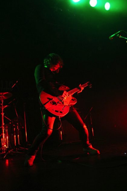 2曲目は「Beautiful Death」。ひとつのリフがひたすら繰り返されるこの曲で、ようやく浅井のボーカルが聴けた。フロア前方は手を上げて、ステージ上の3人を煽る。「Turkey」ではアップテンポの演奏と静寂のコントラストがオーディエンスをぐっと引き付ける。緑と紫の照明も細かく入れ替わりながら楽曲を彩っていた。