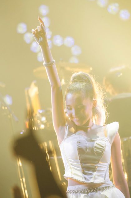 ライヴは佳境へ。ご機嫌な歌声とバンドの熱量が拮抗していく「Be The One」、ビアノと歌だけの世界か一気にスケールが広がる「Just once again」、爽やかなサウンドの上で、ポニーテールを揺らして歌うBeverlyが印象的な「Never Ever」と曲を繋げていく。