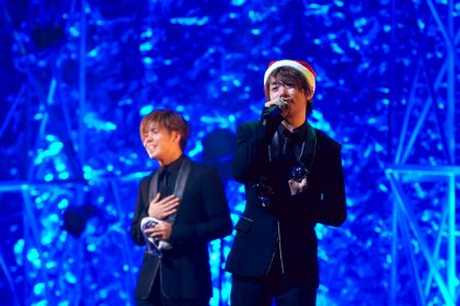 そしてステージは中盤、「クリスマス」的な趣向を交えたステージへ。会場が一度暗転すると、O-EASTの特徴でもある、ステージ上手に設けられたサブステージのカーテンが開けられた。中には、キーボードを目前に座るTaka.の姿。そしてゆったりとした弾き語りで、クリスマスソングの定番でもある山下達郎の「クリスマス・イブ」を披露。さらい続いてメインステージではHayatoがマライア・キャリーの「恋人たちのクリスマス」を熱唱と、極上の歌声が披露される。「クリスマスといえばこれ」といわれるくらいに定番であるそれぞれの曲。それがゆえに、逆に自身の個性を出して歌うことが難しい楽曲であるが、2人はそれぞれの個性をしっかりと発揮しながらも、伸びやかな歌声で聴くものを魅了した。