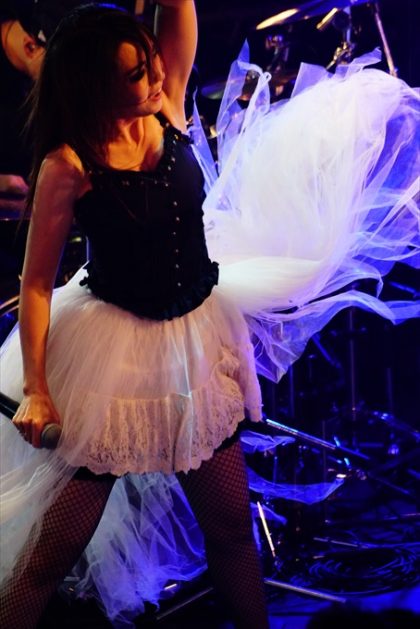 そして再びステージに登場したAnza。前半は白のヒラヒラとしたスカート姿で登場していたAnzaだが、後半は黒のミニスカート。