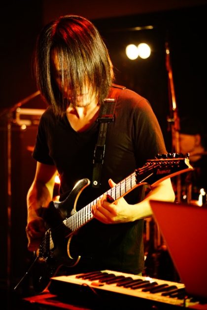 前半最後の「Breeze」をプレイし終わると、Anzaは一時ステージからはける。それと同時にBatchの刻み続ける音に、Narumiがベース音を合わせる。それは音程のあるようなフレーズでもない、奇妙な音にも聴こえたが、ドラムの音と相まって何か一つのグルーヴを作り出す。やがてその音に対してHiroのギターが加わり、3人の音に調性を加えていく。その音は、やがてそのまま3人の声になったような錯覚さえ与えた。