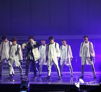 アカペラで歌い出すと空気が変わった。後ろにはハットを被った8人のダンサーが並ぶ。その後、無音ダンスで9人がシンクロ。静寂に包まれる場内にステップを踏む足音が響く。その振付の最後の足を踏み下ろすと同時に、次の楽曲が始まる瞬間は圧巻だった。