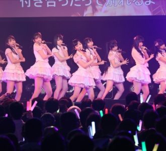 19時半、2回目公演も新曲「無意識の色」でスタート。11thシングル「チョコの奴隷」から21stシングル「意外にマンゴー」までのシングル10曲を披露。