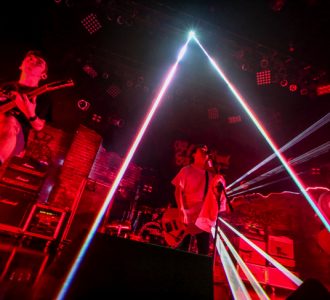 開演を待つオーディエンスで満たされた会場は、既に盛り上がる準備は万端といったワクワク感が広がっていた。ステージはドラム缶が無造作に転がっているスラム街を彷彿とさせる荒れた街並み。その壁には落書き風にバンド名が描かれていた。
