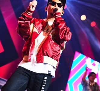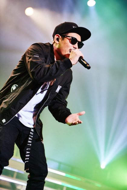 ステージには、階段が作られLEDで装飾されているのが確認できる。中央にはMANA-BのDJセットを配置。ライブへの期待感が高まるなか、開演時刻になると照明が落ち、SEが響き渡った。階段の頂上から、Rover、MOCA、HiDEXの順番で勢いよく奈落から飛び出してくるオープニング。この演出に観客も大興奮。「Future」でライブの幕は開け、オープニングからタオルを回転させ盛り上がった。