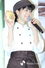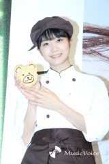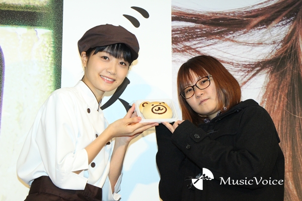 - 「くまさんパン」を手に撮影に応じた深川麻衣とファン(撮影=桂 伸也)