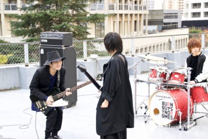 スリーピースロックバンドのBURNOUT SYNDROMESが2017年12月某日、都内で、新曲「花一匁(はないちもんめ)」のミュージックビデオ(MV)の撮影に挑んだ。MusicVoiceではその現場を独占取材。撮影を通して新曲に込められた意味を探った。【取材・撮影=村上順一】