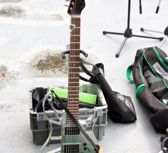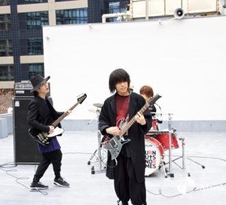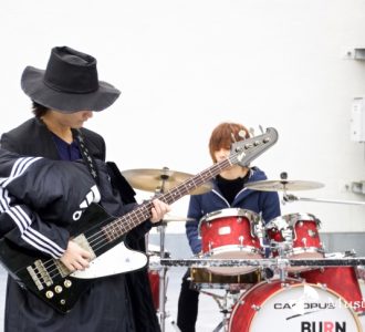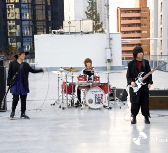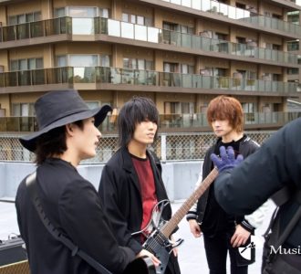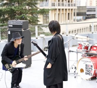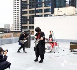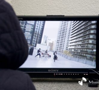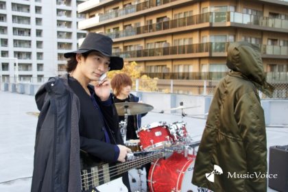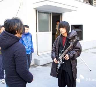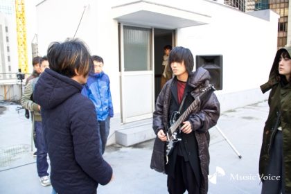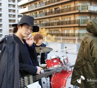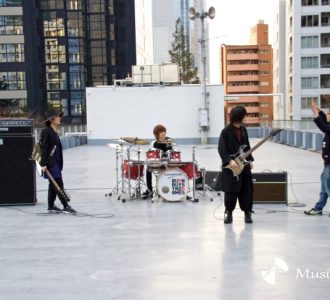 実はこの日、撮影で使用はされなかったがベースの石川大裕も新しい楽器を購入し持参していた。Gibsonのサンダーバードがトレードマークだが、購入したのはYAMAHA製。新しいサウンドを追い求めて、今後のレコーディングで活躍すると語っていた。ドラムの廣瀬拓哉は撮影場所となる屋上に行き、一足早くドラムをセッティング。MVの撮影だがライブさながらに真剣にセッティング。「何センチかずれただけでも違和感があります」と妥協なく進める姿が印象的であった。