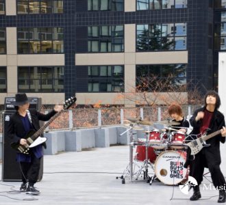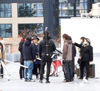 続いてはMVのバンドシーンの撮影へ。今回はバンド初の屋外での演奏シーン。メンバーもビル群に囲まれ新鮮さを感じながらの撮影。360度を使いカメラマンが動きながら様々な角度でメンバーを捉える。確認待ちの時に石川がリズムをとりながら動いているのが印象的だった。これから始まる本番への空気感はライブにリンクする緊張感を感じた。
