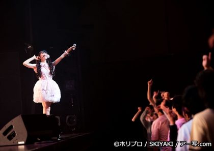 しっかりとメロディを歌い上げながら、ステージを左へ、右へ、そして観客に手を振りながら、パフォーマンスもしっかりと決める山崎。さらには「空っぽのパペット」から「Lunatic Romance」、途中に中森明菜の「DESIRE -情熱-」まで、一転してダークでクールな雰囲気の曲もしっかりと歌で表現する。MCで見せるあっけらかんとしたイメージとは180度異なり、その歌には並々ならぬ情熱が感じられた。