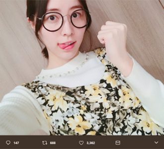 SKE48の松井珠理奈が「メイクする気力もありませんでした」と多忙な1日の様子を報告。ノーメイクとも思われる写真も公開。眼鏡に舌出ししている表情にファンから「可愛い」などの声が寄せられている。。=写真=「メイクする気力もありません」と綴り、ノーメイク写真を公開した松井珠理奈。ファンからは可愛いの声(Twitterより@JURINA38G)